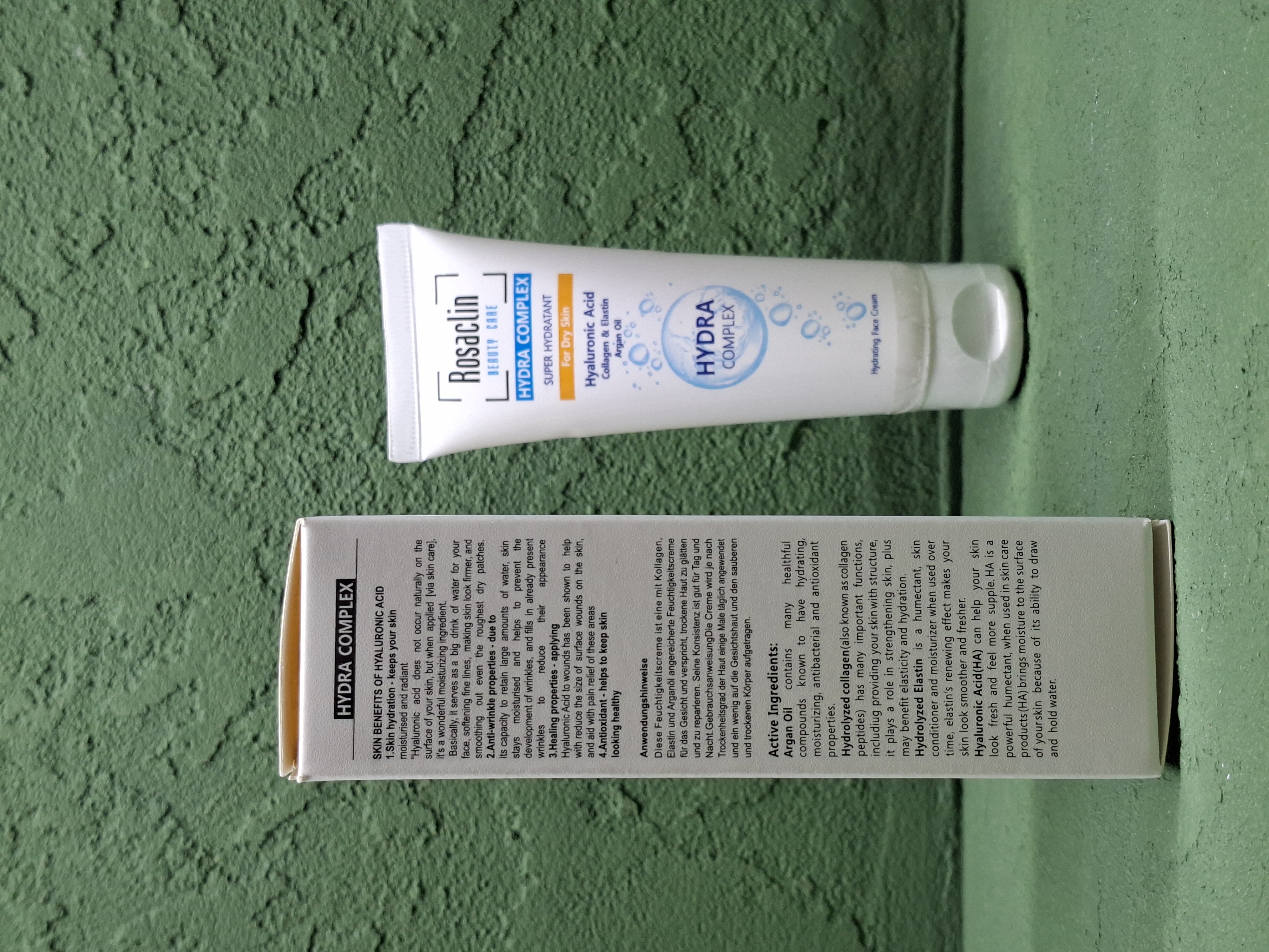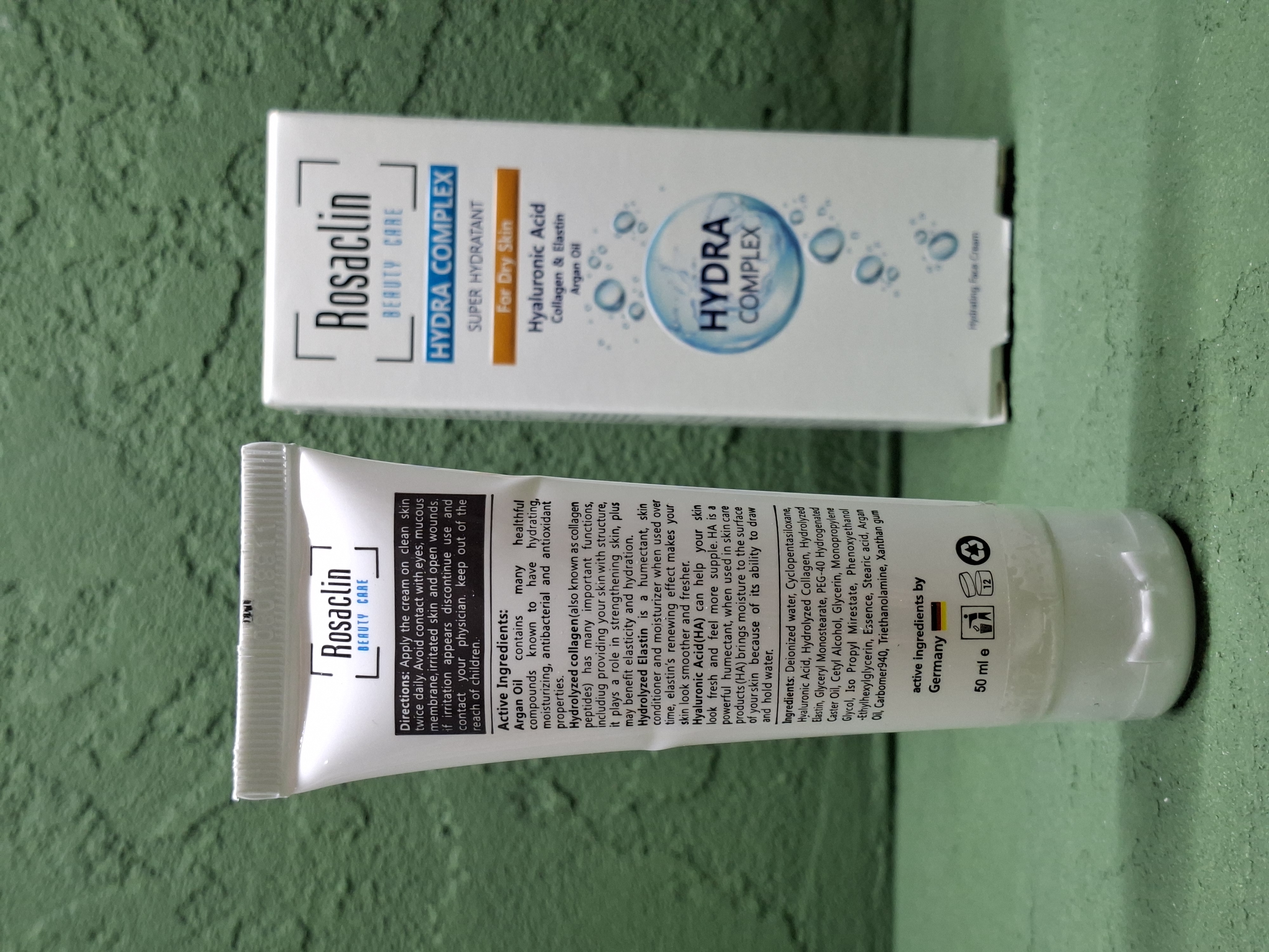 کرم آبرسان رزاکلین دارای هیالورونیک اسید، کلاژن والاستین است. با افزایش سن به مرور زمان پوست استحکام و شادابی خود را به دلیل تجزیه کلاژن، فیبرهای الاستیک و کاهش مواد مرطوب کننده خود که همان هیالورنیک اسید است را از دست می دهد. هیالورونیک اسید ترکیبی طبیعی ست که باعث شادابی و حفظ رطوبت پوست شده و بافت پوست را ترمیم می کند. کلاژن خاصیت ارتجاعی و آبرسانی به پوست صورت می بخشد و پوست را شاداب تر و سرحال تر نشان می دهد. الاستین نیز خاصیت نرم کنندگی و رطوبت رسانی دارد و بعد استفاده پوستی صاف تر و سرحال تر به ارمغان می آورد. از دیگر خواص این مرطوب کننده و مراقب صورت این است که خاصیت بهبود چروک را دارد و از ایجاد آن نیز جلوگیری مینماید.