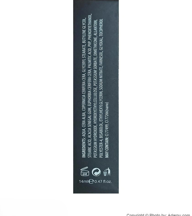 گلیسیرین استئارات، بوتیلن ترافالات گلیکول، استریک اسید، اقاقیا سنگال GUM، فرفیون CERIFERA CERA، اسید پالمتیک، PVP، فنوکسیاتانول، هیدروکسید پتاسیم، هیدروکسیاتیل سلولز، پتاسیم بیرون درز، DIMETHICONE، آلانتوئین allantoin پلی استر-4، بیسابولول اتیل هگزیل گلیسیرین، نیترات سدیم، فارنسل، گلیوکسال، توکوفرول، ممکن است حاوی: C 77499، CI 77266 (نانو)